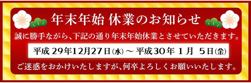 ■休業期間 平成29年12月27日(水)~ 平成30年1月5日(金)