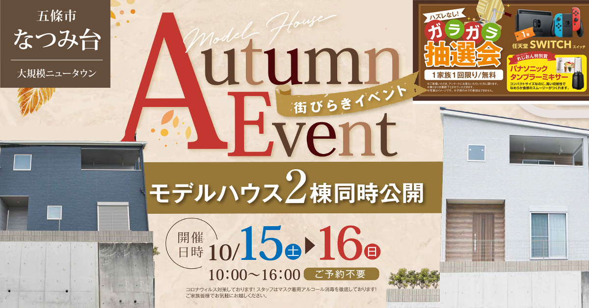 五條市なつみ台にて、2棟同時モデルハウスの見学会を開催いたします。