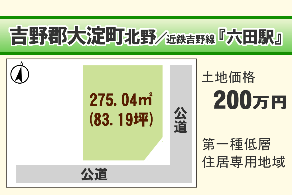 | 最寄駅(沿線/駅名/徒歩) | 近鉄吉野線 / 六田駅 / 徒歩17 分 |